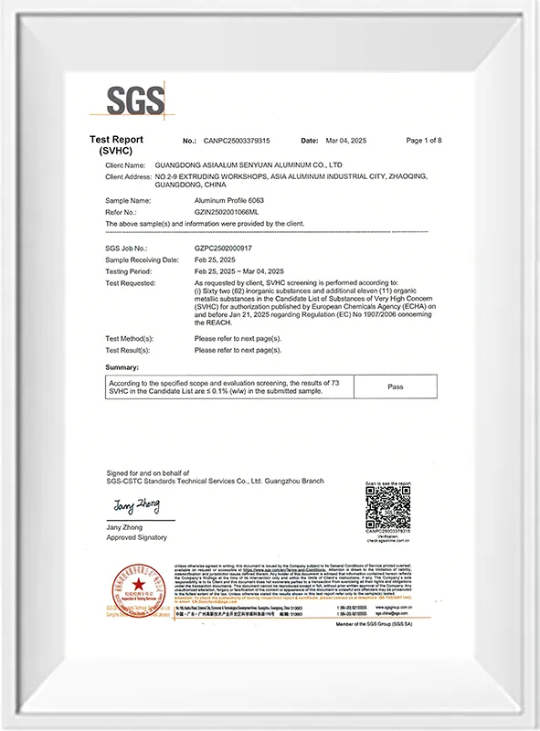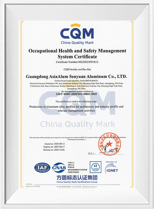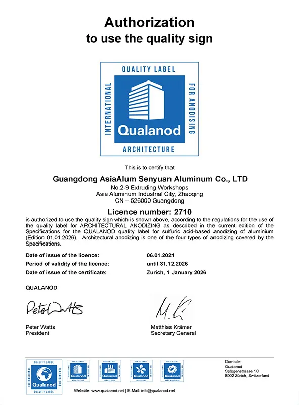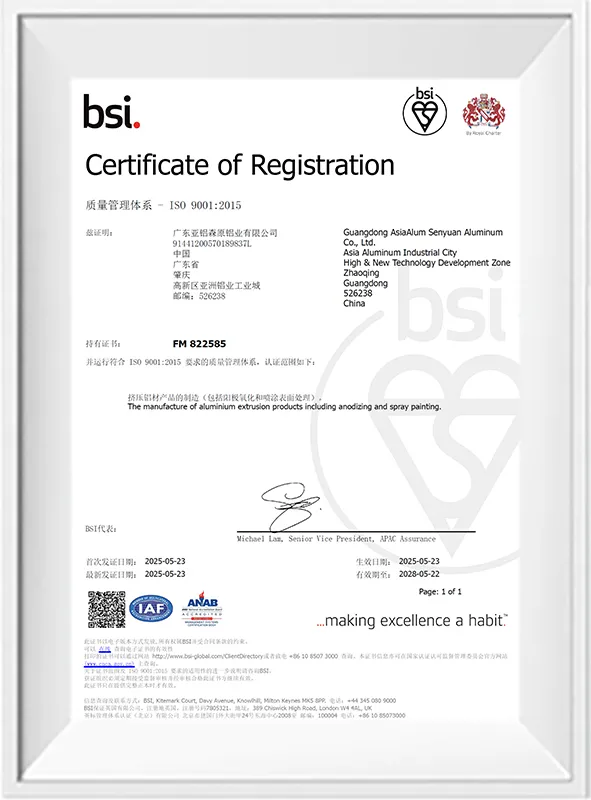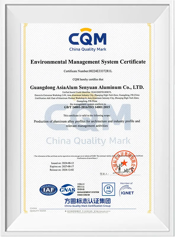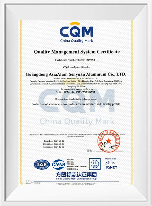 شهادة جودة المنتج-ملامح طلاء الكهربي