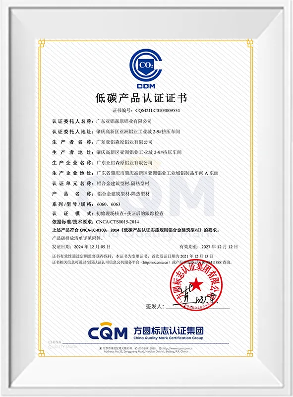 شهادة المنتج منخفض الكربون-ملامح طلاء الفلوروكربون